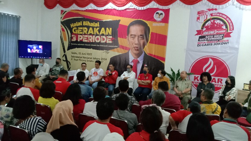 Pada hari Sabtu, 25 Juni 2022, pukul 11.00 wib hingga selesai, bertempat di Sekretariat Nasional Jokpro 2024 jalan Tegal Parang Selatan I No. 37, Jakarta Selatan, diadakan acara Halal Bihalal “Gerakan 3 Periode” bersama sejumlah relawan Jokowi dan tokoh serta kelompok masyarakat.